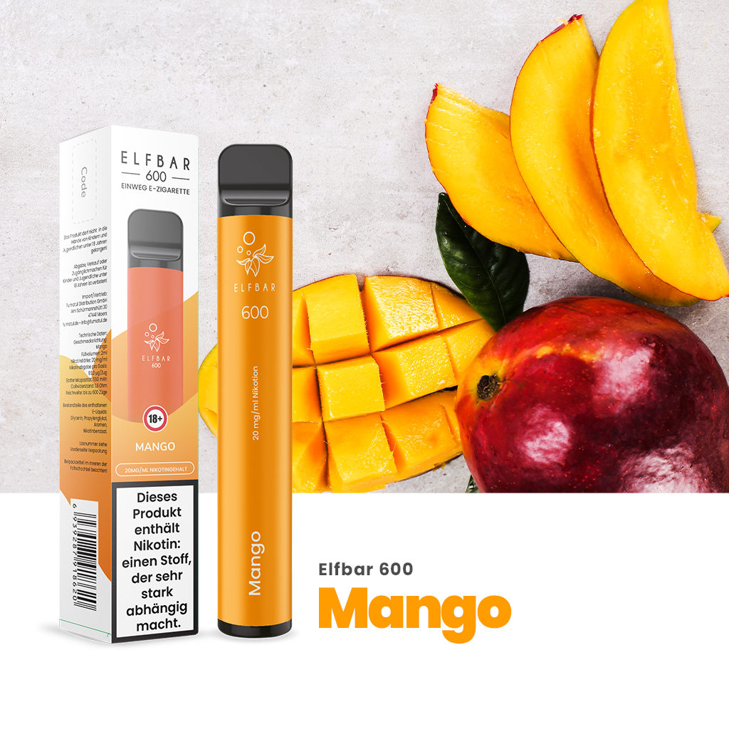 Elfbar 600 Mango bietet einen angenehm milden und ausgewogenen Geschmack von süßen Mango mit einem Hauch von Frische.